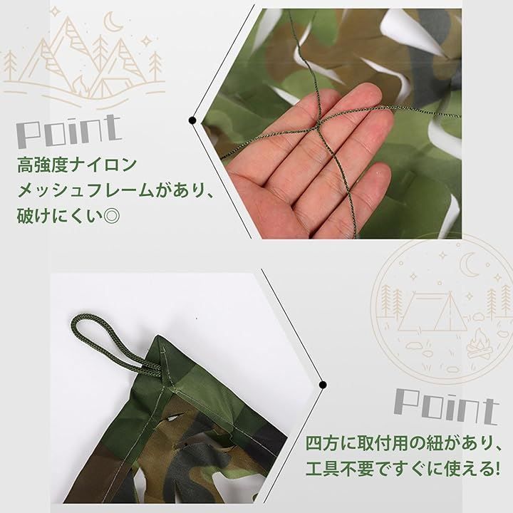 カモフラージュネット 偽装網 迷彩ネット 風通し 目隠し キャンプ 野外活動 ミリタリー 野鳥撮影 風通し 装飾 より厚い生地 双層 AmazonTENCEN カモフラージュネット 迷彩ネット 迷彩メッシュ生地 ギリーネット 偽装網 サンシェード 日除け 風通し 目隠し キャンプ。
