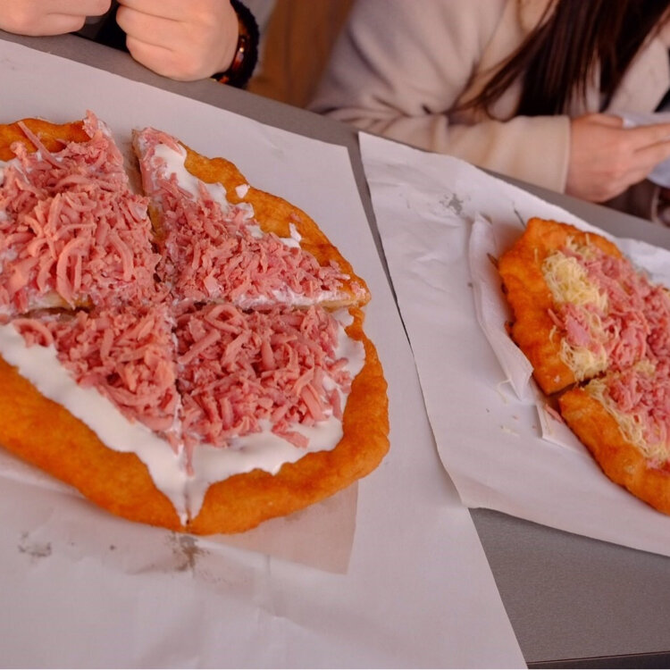 ブダペストの実際に食べて美味しかった ランゴシュのお店をこっそり教えるね🥞 コメントすると受け取れるよ!コメント内容に迷ったら「好きな食べ物」を送ってね✨ ---ランゴシュとは?--- ハンガリーのソウルフードみたいな存在で一言でいうと「揚げたての悪魔的なパン。
