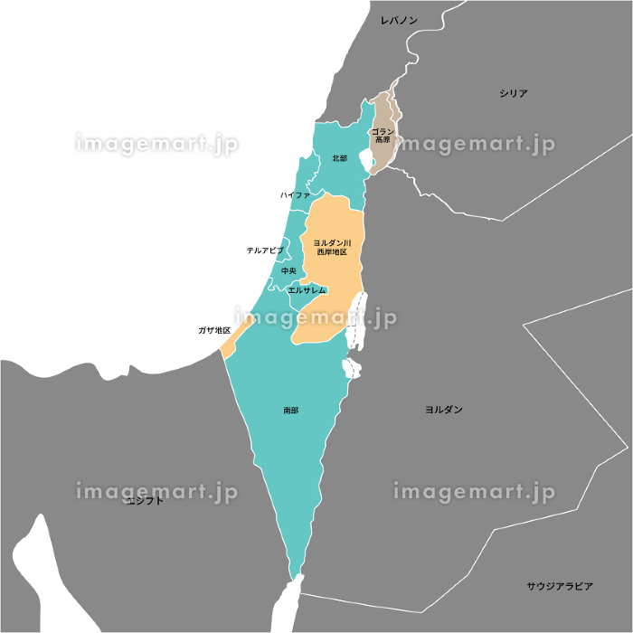 イスラエルの各地区とパレスチナ自治区、ゴラン高原の地図、周辺国、日本語の地名入りのイラスト素材232317000 毎月1点無料 フリー のストックフォト イメージマート。