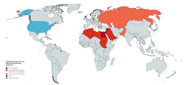 1973年の第4次イスラエル・アラブ戦争 ヨム・キプール戦争 の参加者 : r MapPorn。