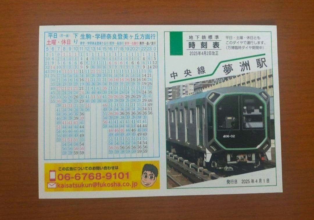 大阪メトロ 夢洲駅 臨時ダイヤ 時刻表 中央線 2025年4月 - メルカリ。