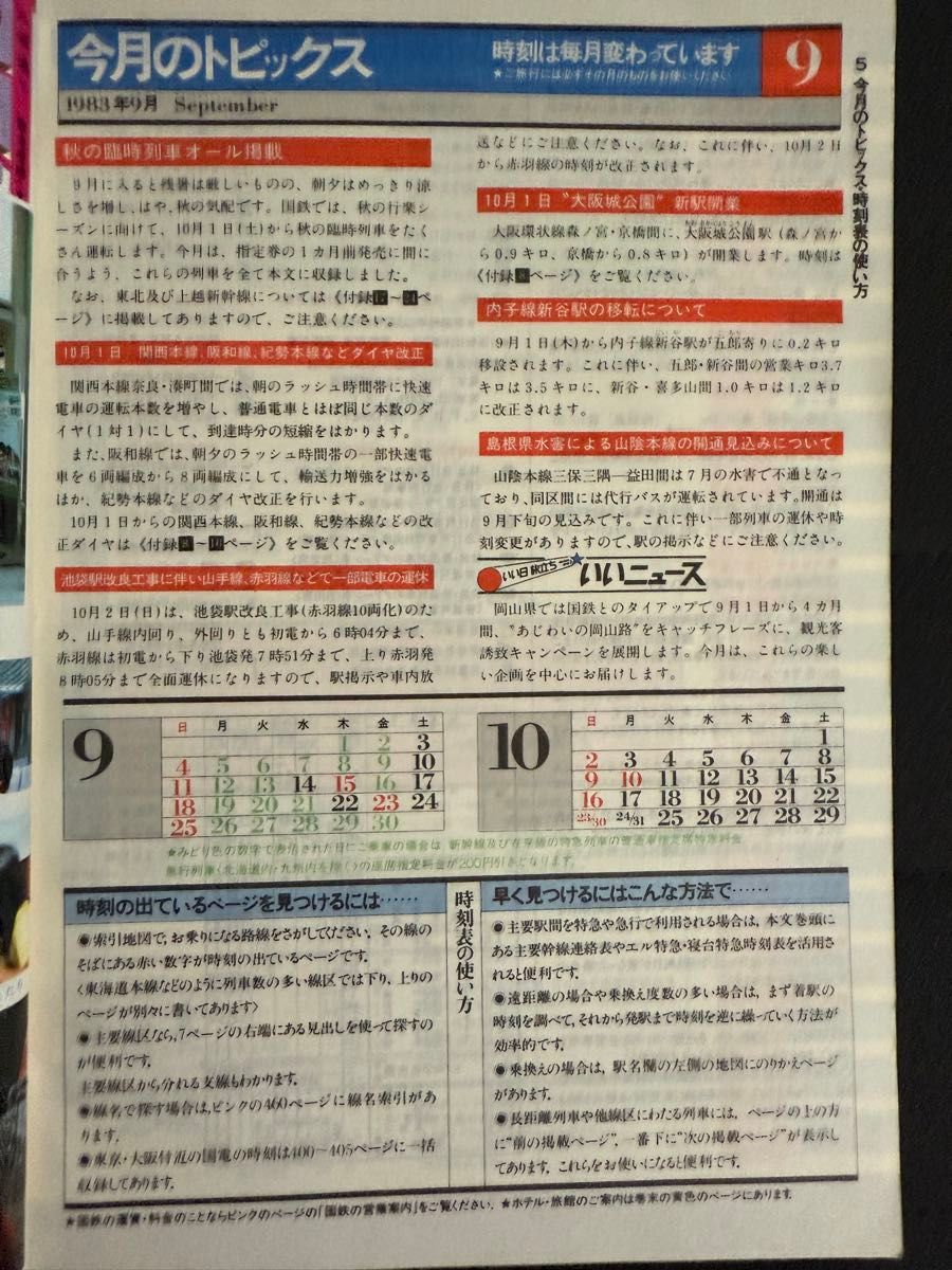 国鉄監修 交通公社の時刻表 1983年 昭和58年 9月号 秋の臨時列車 10月1日関西・阪和・紀勢線などダイヤ改正。