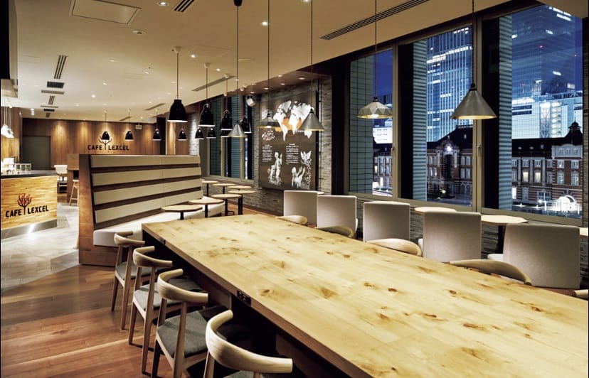 東京駅を一望できるカフェ - CAFE LEXCEL 丸の内ビルディング店東京駅 タカシムカフェ。