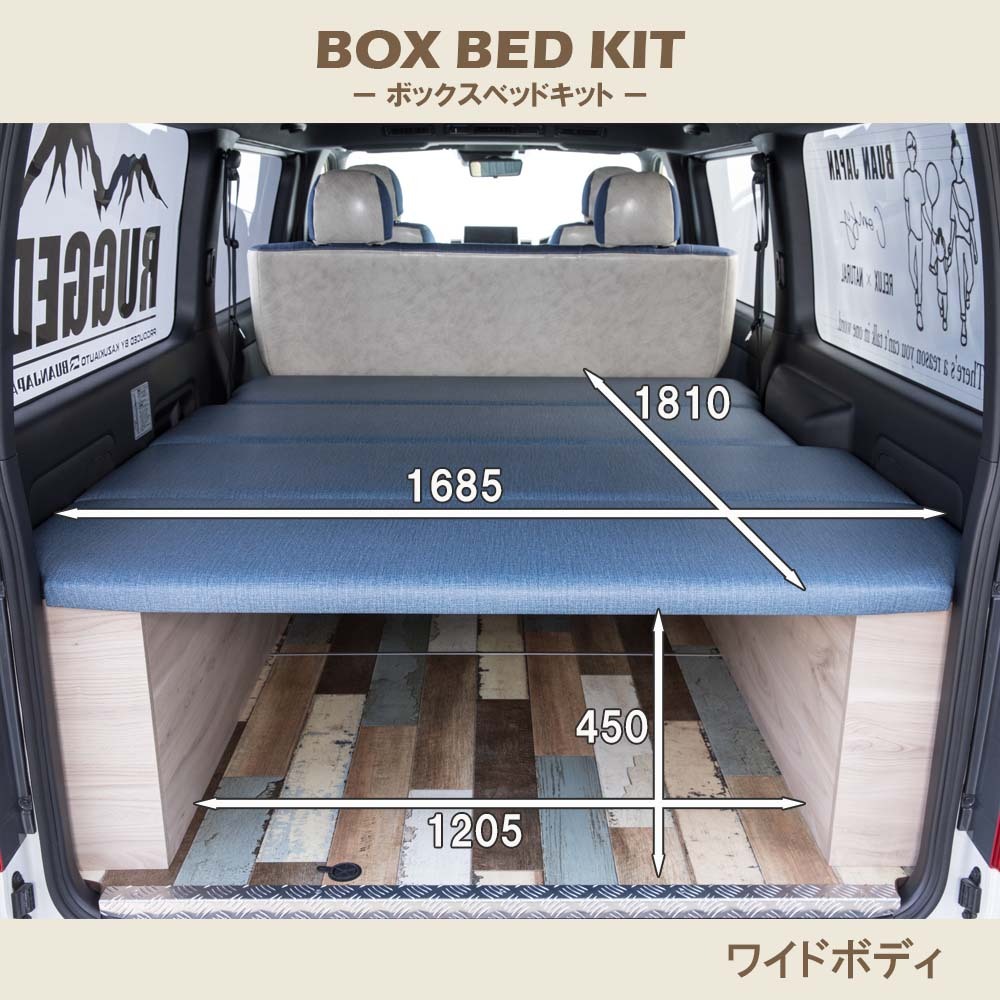 ハイエース200系BOXベッドキット-デニム調レザー-ボックスベッドキット ワイドボディ 設定あり キャンプ 釣り サーフィン 簡単取付 ハイエース内装 カスタム 初心者 にも オススメ! 7型対応。