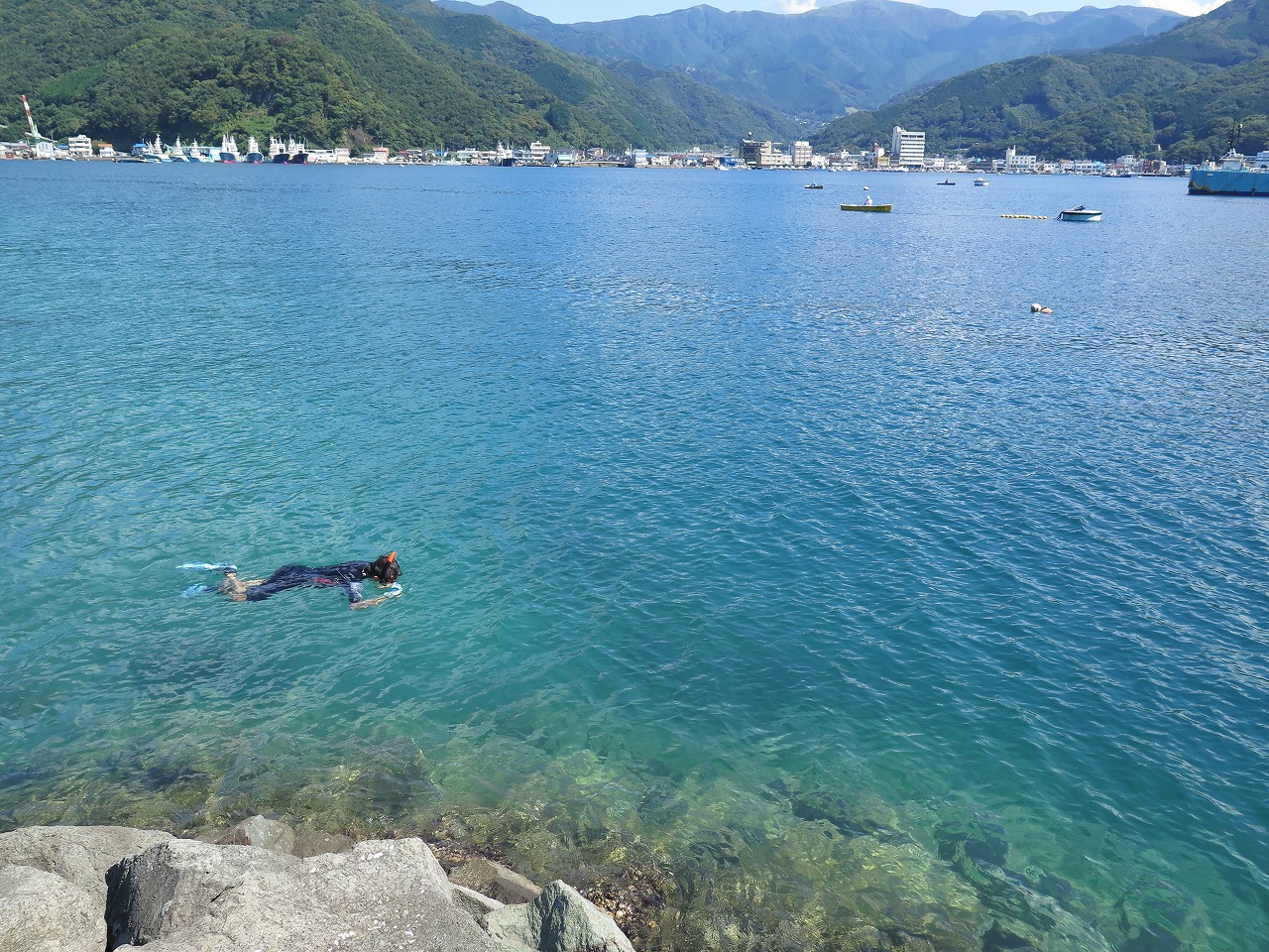 田子瀬浜海水浴場でシュノーケリング 静岡県西伊豆町 新川夏生。