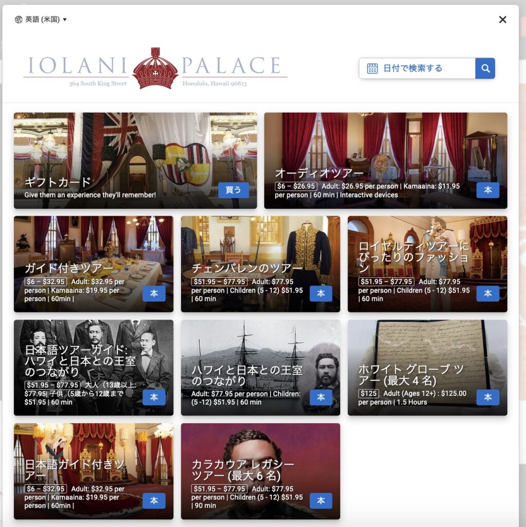 イオラニ宮殿のチケットGo オアフで割引入場料込み。