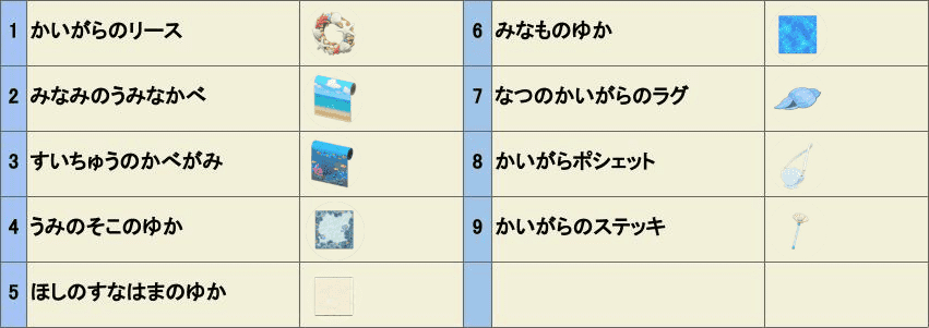 あつ森 夏季限定DIYレシピ入手法と入手期間一覧 なつのかいがら・12星座DIYレシピ。