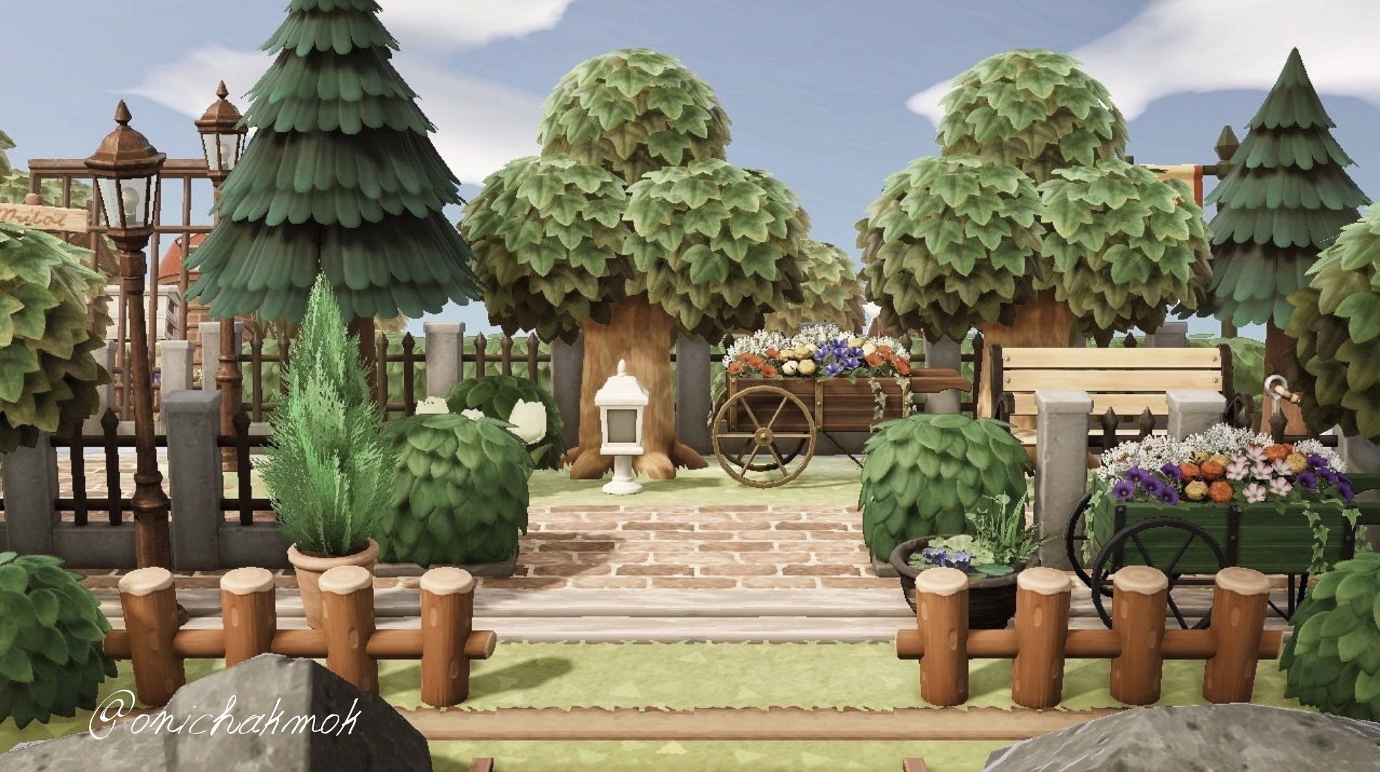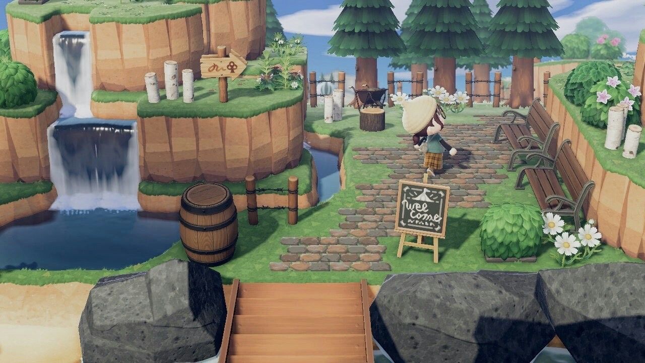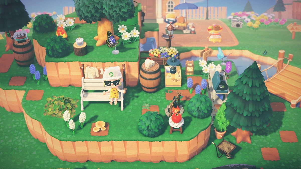 りえくま on X: "やっと少しだけ新しい島クリ進めましたˊ˗ 飛行場前の階段上がった所の景色。木多めにしようと思ってたのに気づいたら全然植えてなかったAnimalCrossingACNHあつ森https:t.co B9eLiJIcUu"X。