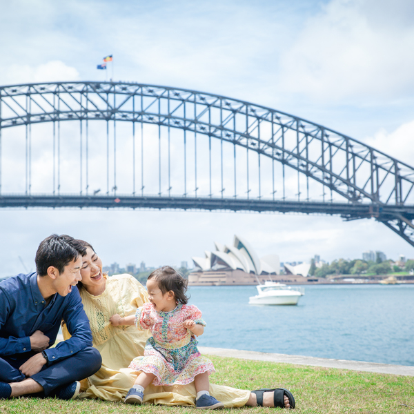 プロのカメラマンによる、観光地での家族撮影。シドニーロコタビ。