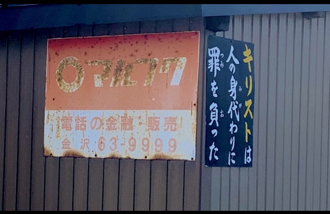 HGS model on X: "田舎の謎看板の勇 キリスト看板の記事でマルフク看板貼ってあるお宅は高確率で看板設置OK貰えるみたいな逆もきっとあるんでしょうね コラボパターンほんと多い マルフクは褪せて真っ白になってるのも多いあなたがいるからhttps:t.co 1pJRnrQaB0"X。