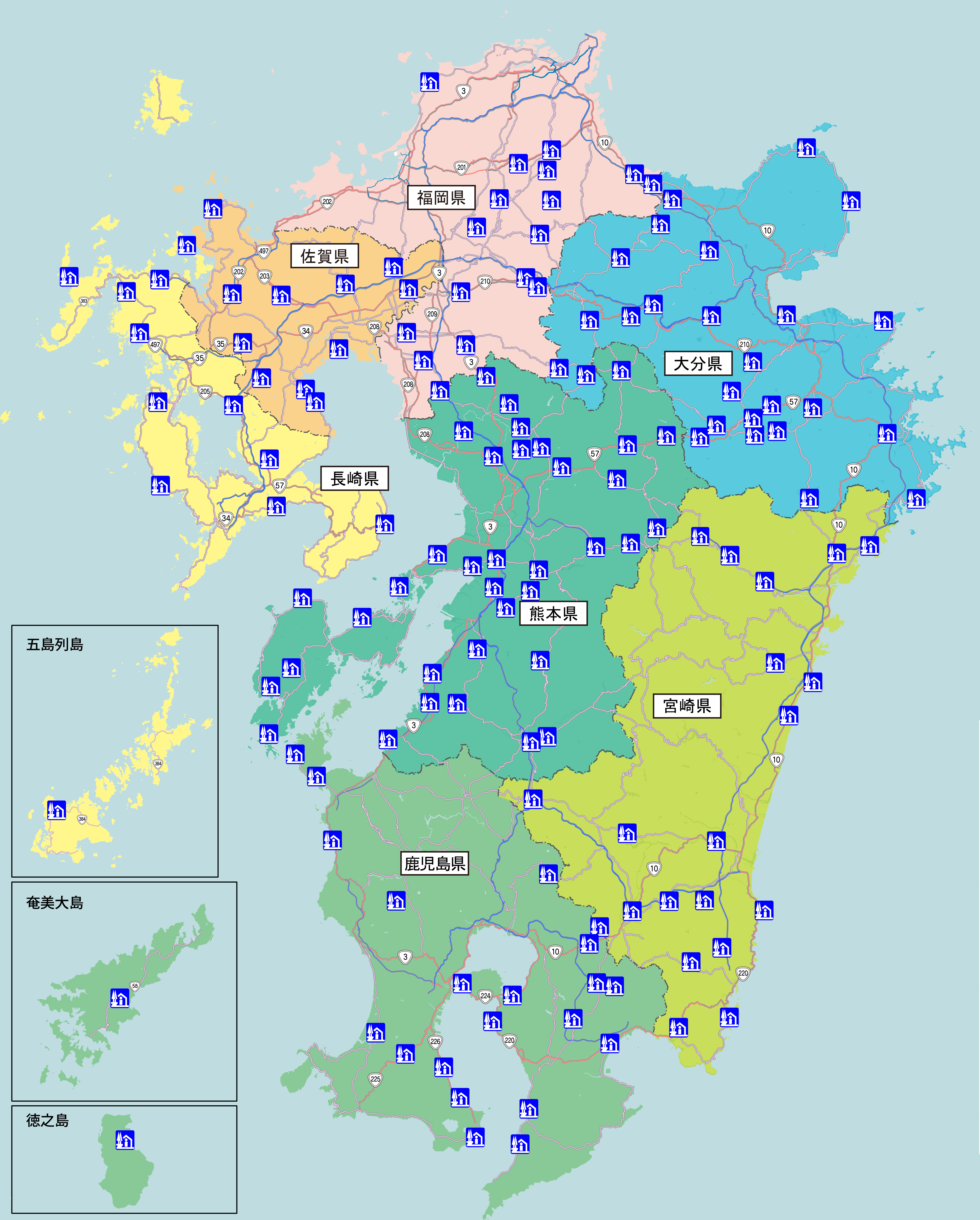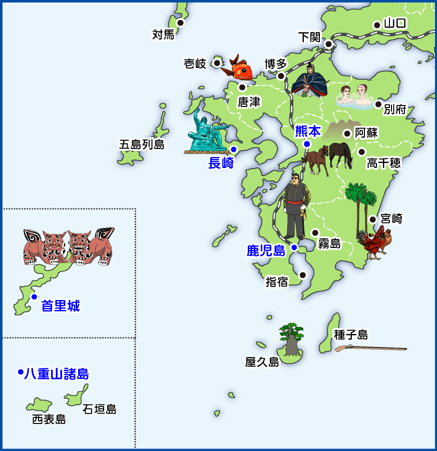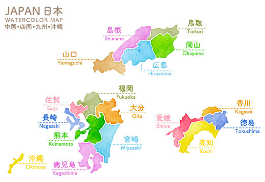 九州地方の各県の地図、離島を含む、カラフルで明るいのイラスト素材248733848 毎月1点無料 フリー のストックフォト イメージマート。