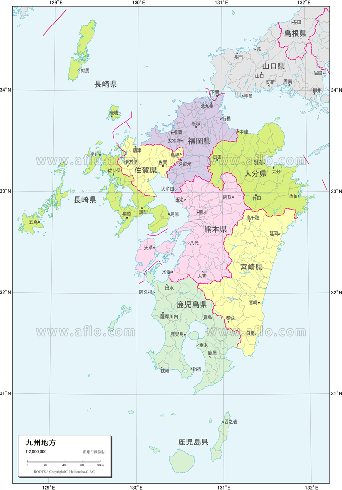 九州地方 行政区分図ベクター地図素材のダウンロード販売アフロモール。