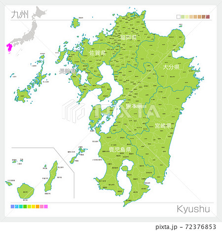九州地方の地図・Kyushu 色分け のイラスト素材62351212- PIXTA。