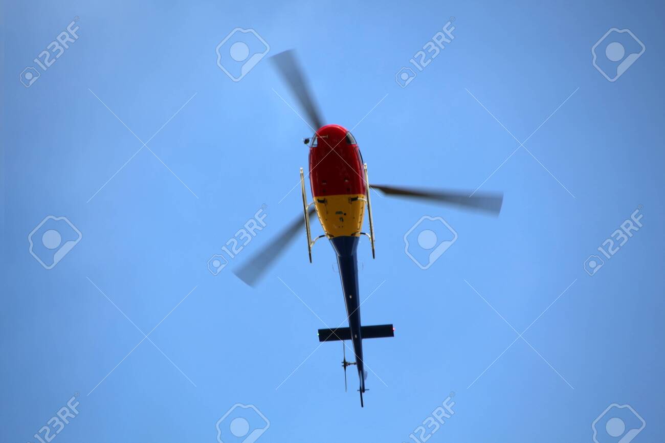 赤と黄色のヘリコプターを操縦の写真素材・画像素材 Image 25110723。