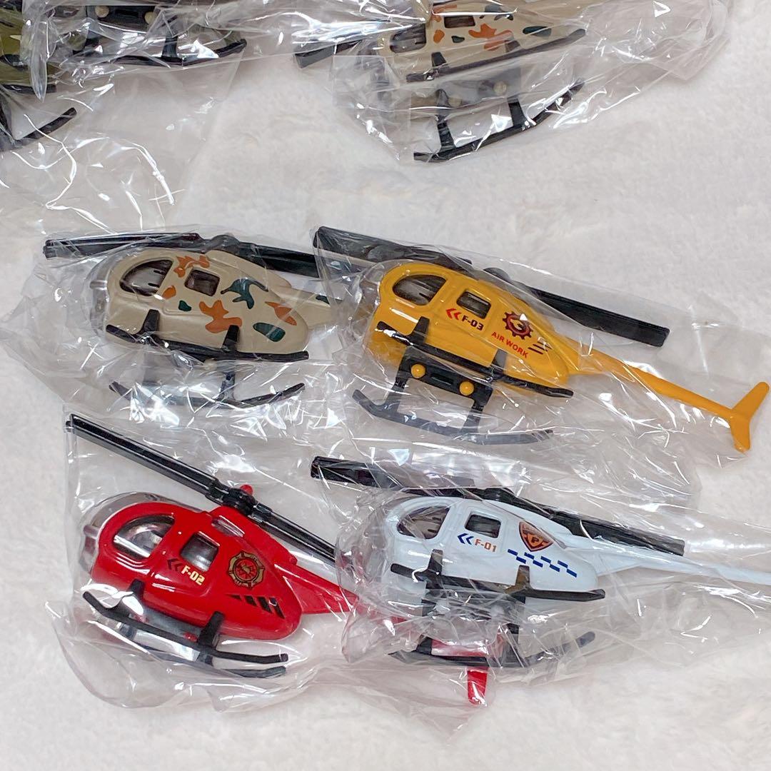ミニチュア ヘリコプター 飛行機 マイクロ 玩具 赤 黄色 迷彩 白色12個。