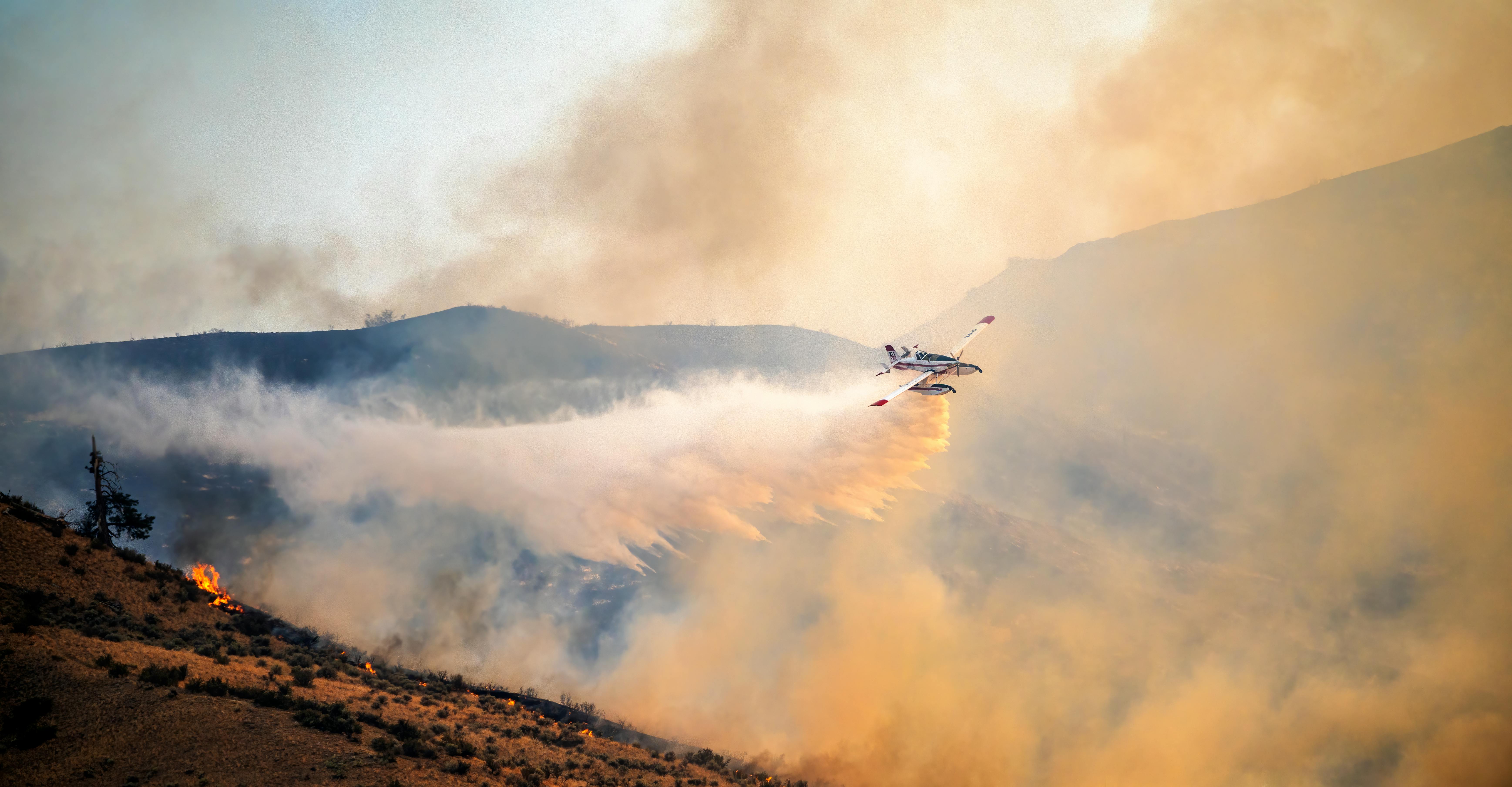 昼間、緑の木々の上を飛ぶ赤と黄色のヘリコプターの写真 – Unsplashの山岳の無料画像。
