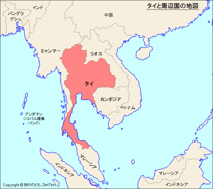 タイと周辺国の地図 - 旅行のとも、ZenTech。