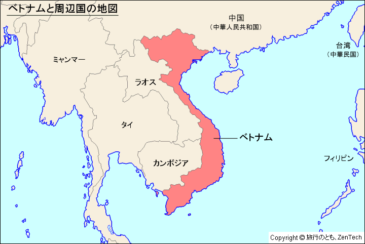 ベトナムと周辺国の地図 - 旅行のとも、ZenTech。