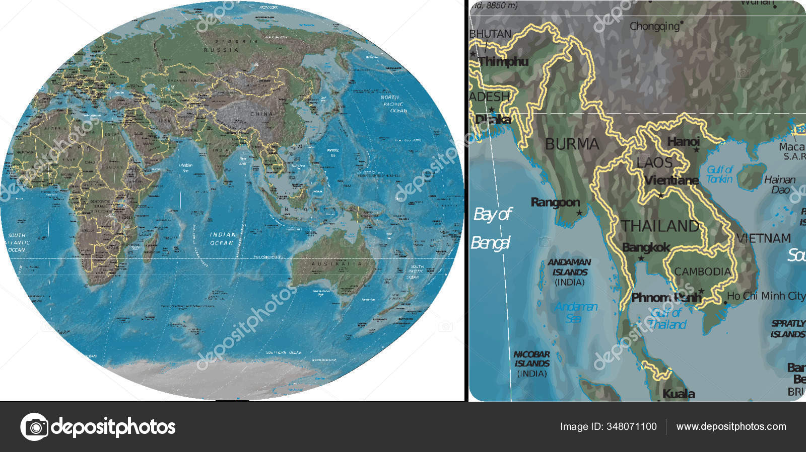 ミャンマータイラオスカンボジアベトナムはアジアオセアニア地図から近い ストックベクター ©YAYImages 348071100。