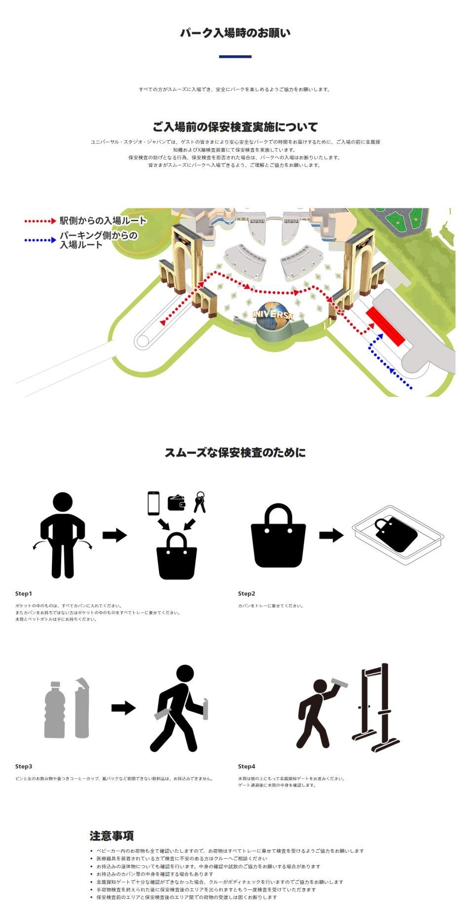 パーク入場時のお願いユニバーサル・スタジオ・ジャパンUSJ。