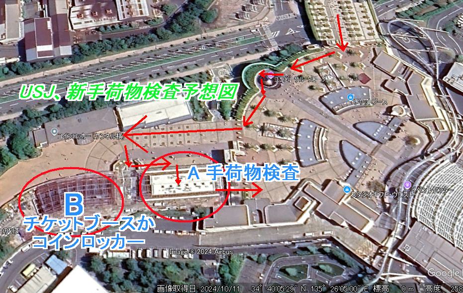 速報 USJ、手荷物検査を駐車場側へ移転決定。USJが2月2日に正式発表。USJ・大阪万博のツボ 毎日ブログ。