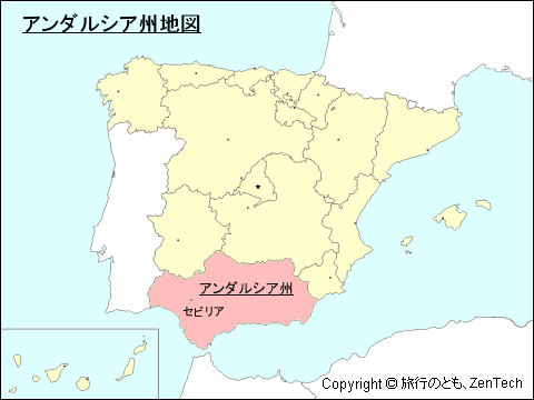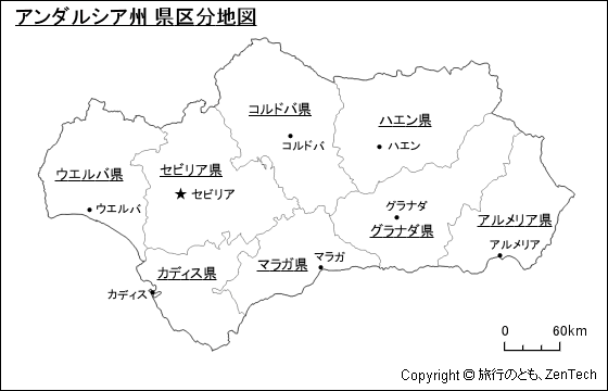スペイン:アンダルシア州 地図 - 旅行のとも、ZenTech。