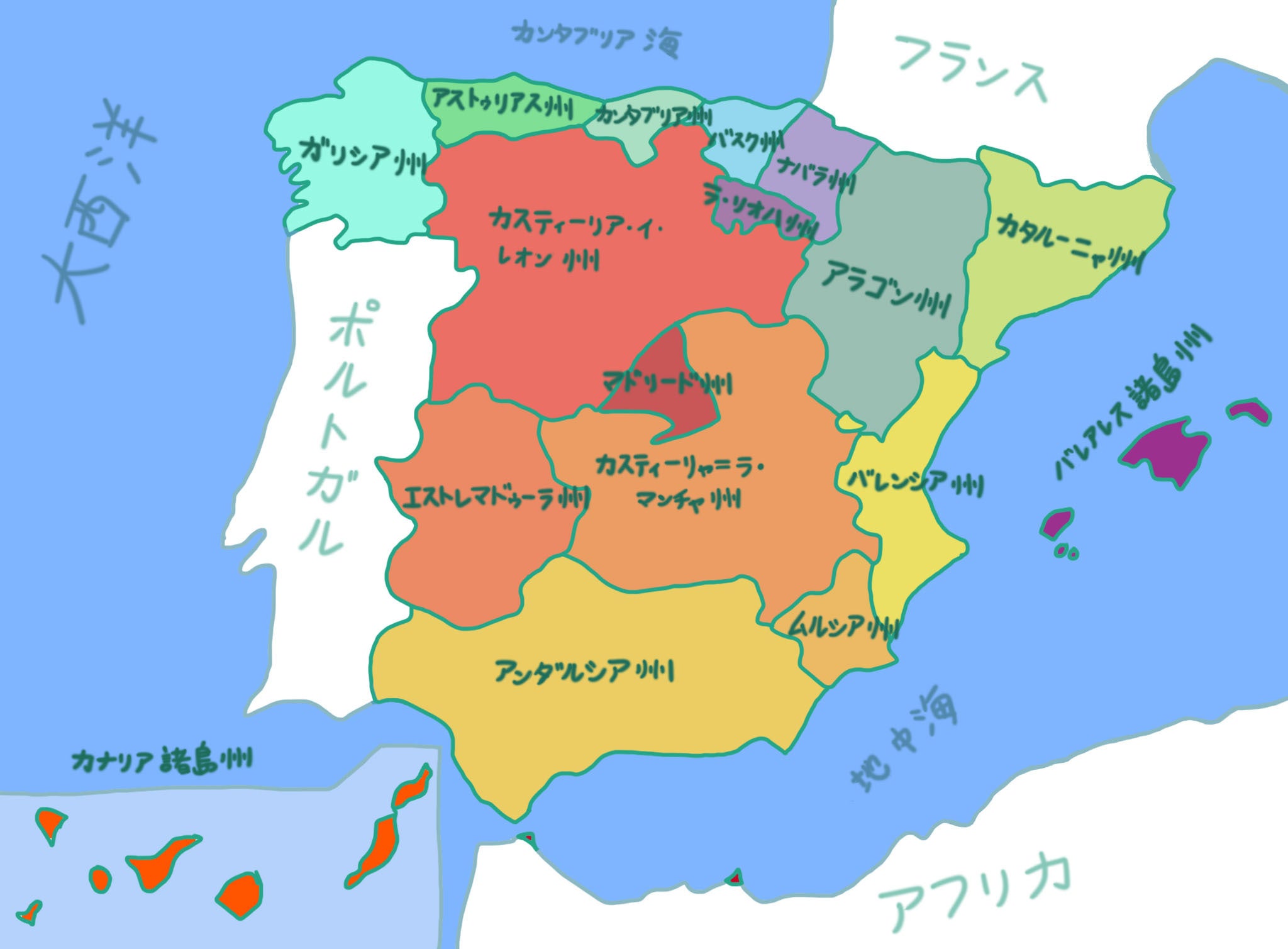 保存版 スペインの州と県、州都と県都のリスト。スペイン語と日本語両方で表記!イラストレーターHARUKAの縁起物ブログ ☆縁起物で運気アップ!Good luck。