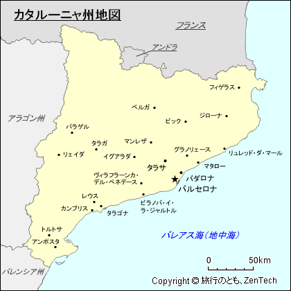 スペイン:カタルーニャ州 地図 - 旅行のとも、ZenTech。