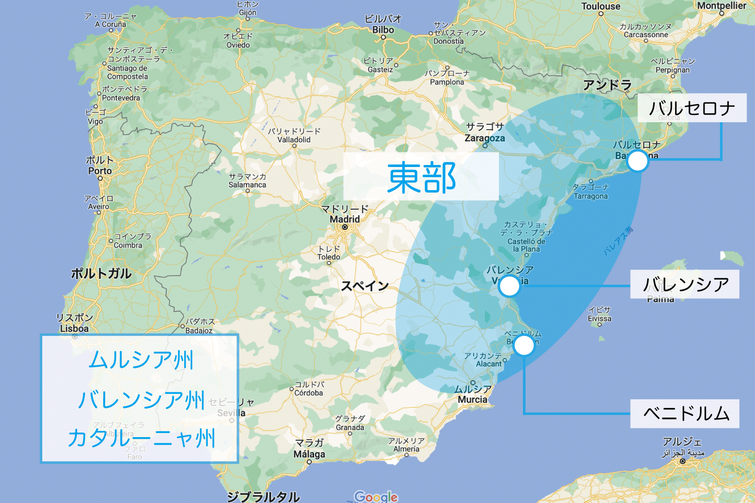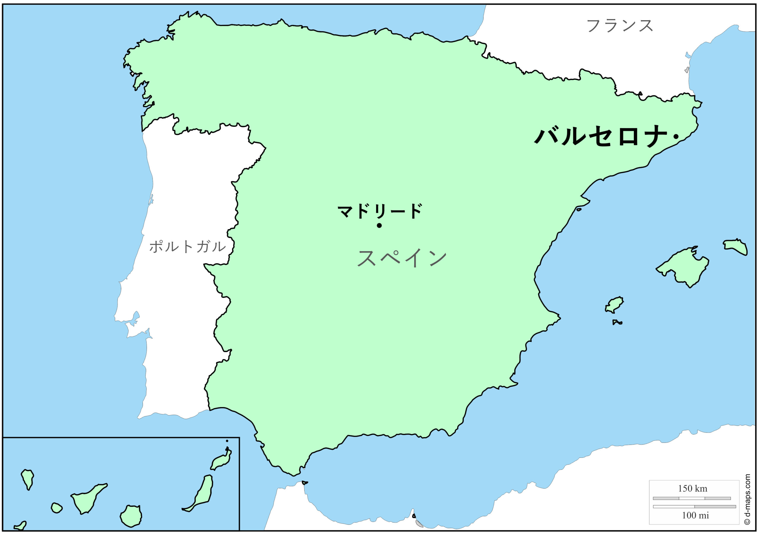 スペインと周辺国の地図 - 旅行のとも、ZenTech。