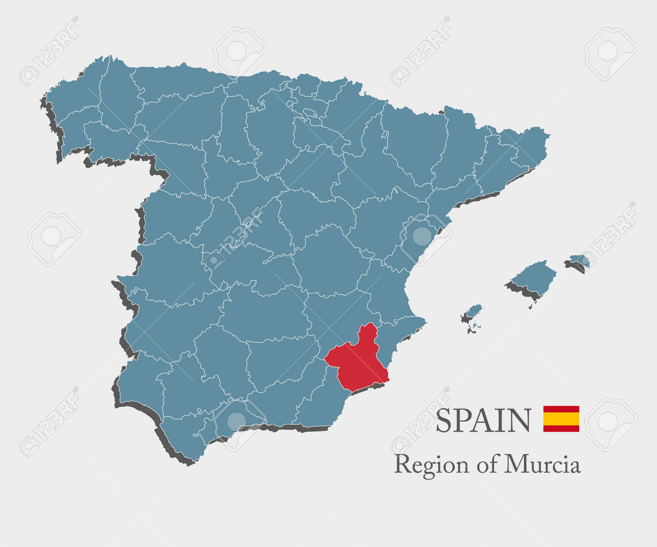 スペインの地図-州ごとに分けられた詳細なイラスト地図。国スペインは白い背景で隔離。ウェブサイト、パターン、インフォグラフィックのベクトルテンプレート領域ムルシアのコミュニティのイラスト素材・ベクターImage 177824572。