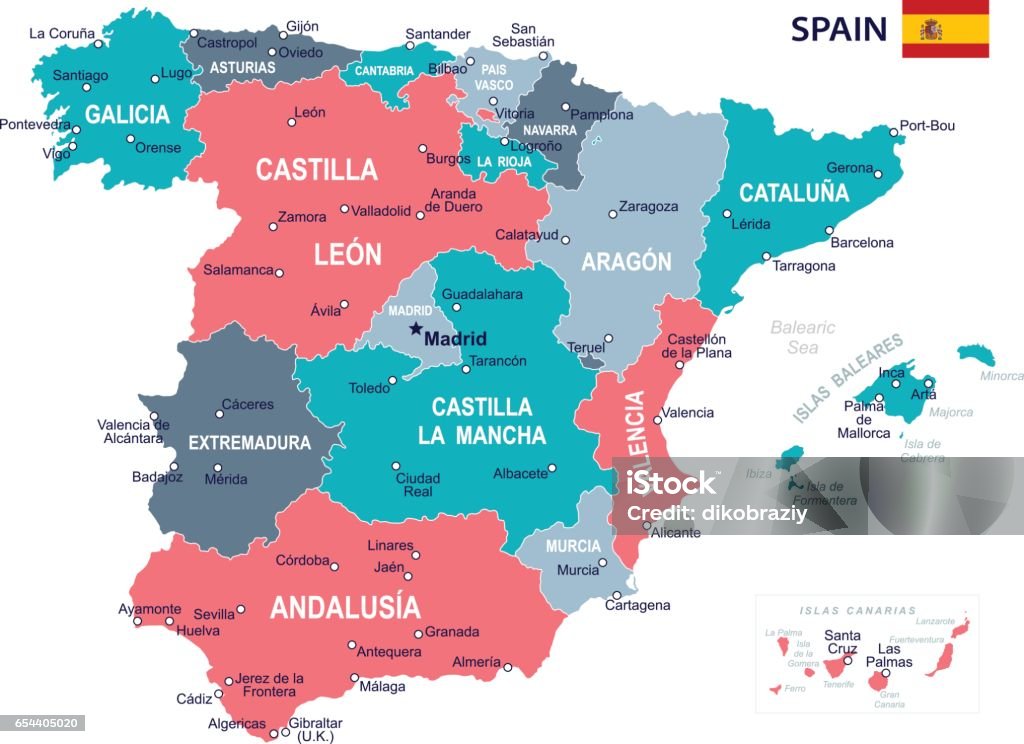 Vetores de Mapa De Espanha Ilustração e mais imagens de Aragão - Aragão,Azul, Baleares - iStock。