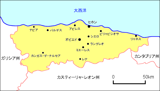 スペイン:アストゥリアス州地図 - 旅行のとも、ZenTech。