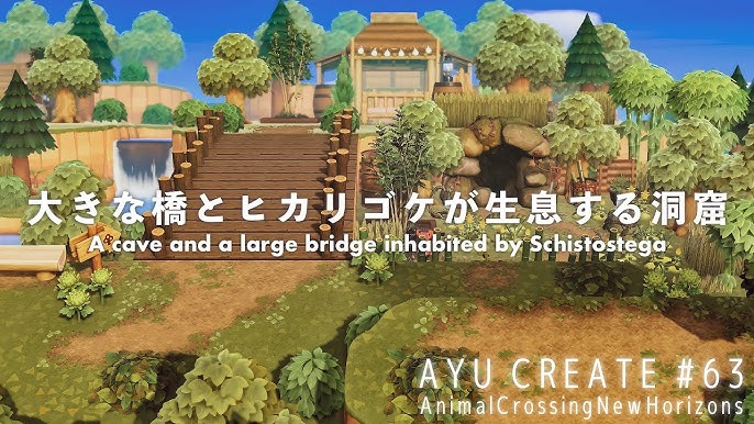 あつ森 大きな橋とヒカリゴケが生息する洞窟マイデザイン配布A cave and a large bridge inhabited bySchistostega 島クリエイト。