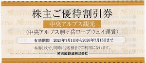 中央アルプス駒ヶ岳ロープウェイ・路線バス往復乗車ご招待券3枚。
