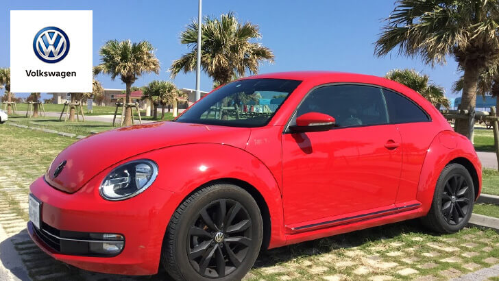 フォルクスワーゲン・ザ ビートルデザイン赤沖縄・宮古島・石垣島のレンタカーならプレミアムレンタカ。