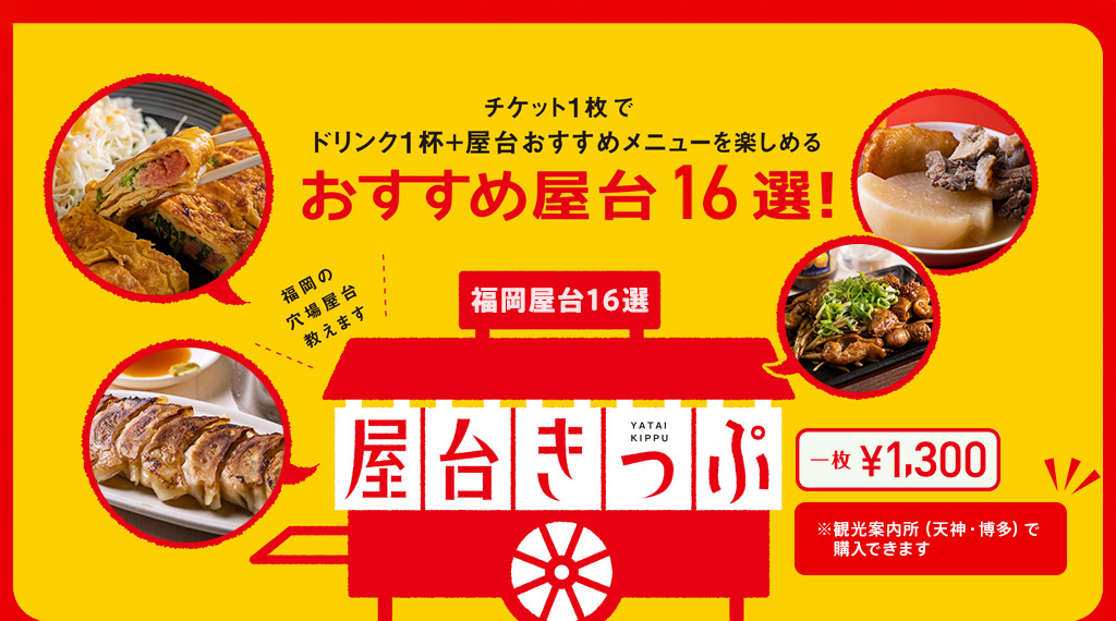 博多・天神の有名・おすすめ屋台の食べあるきチケット屋台きっぷ。