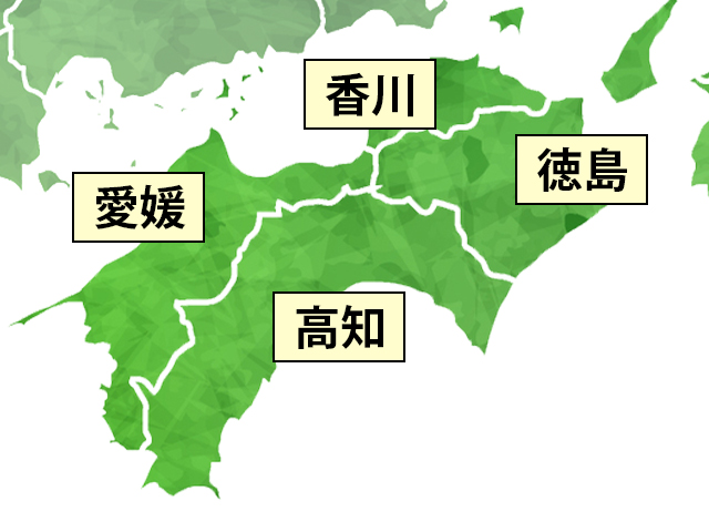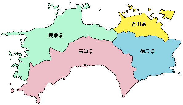 四国地方色分け地図 - 地図日本フリーイラスト素材。