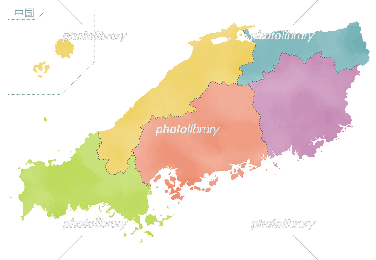 カラフルな水彩風の日本地図 中国地方 イラスト素材6677998- フォトライブラリ。