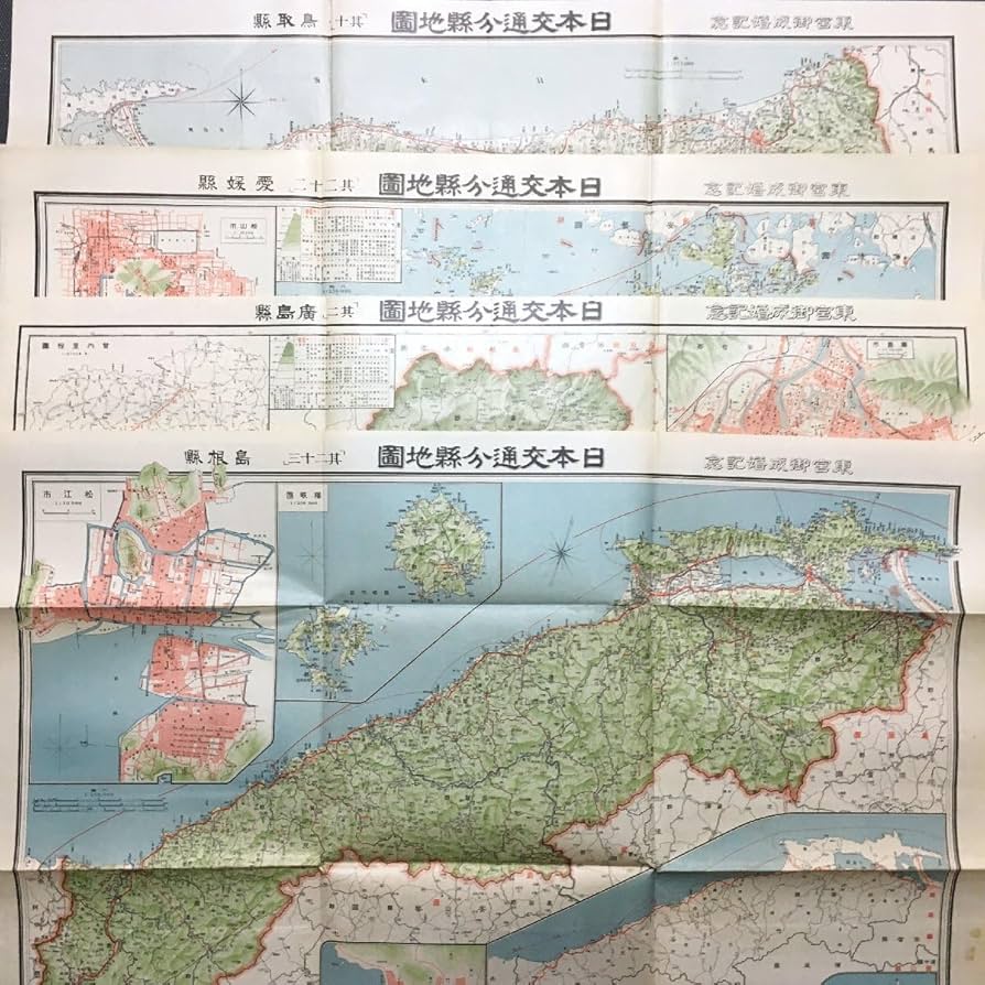Amazon.co.jp: 5点セット『日本交通分県地図 東宮御成婚記念』大正13年 愛媛 徳島 広島 鳥取 島根 四国 中国 戦前 古地図 :文房具・オフィス用品。
