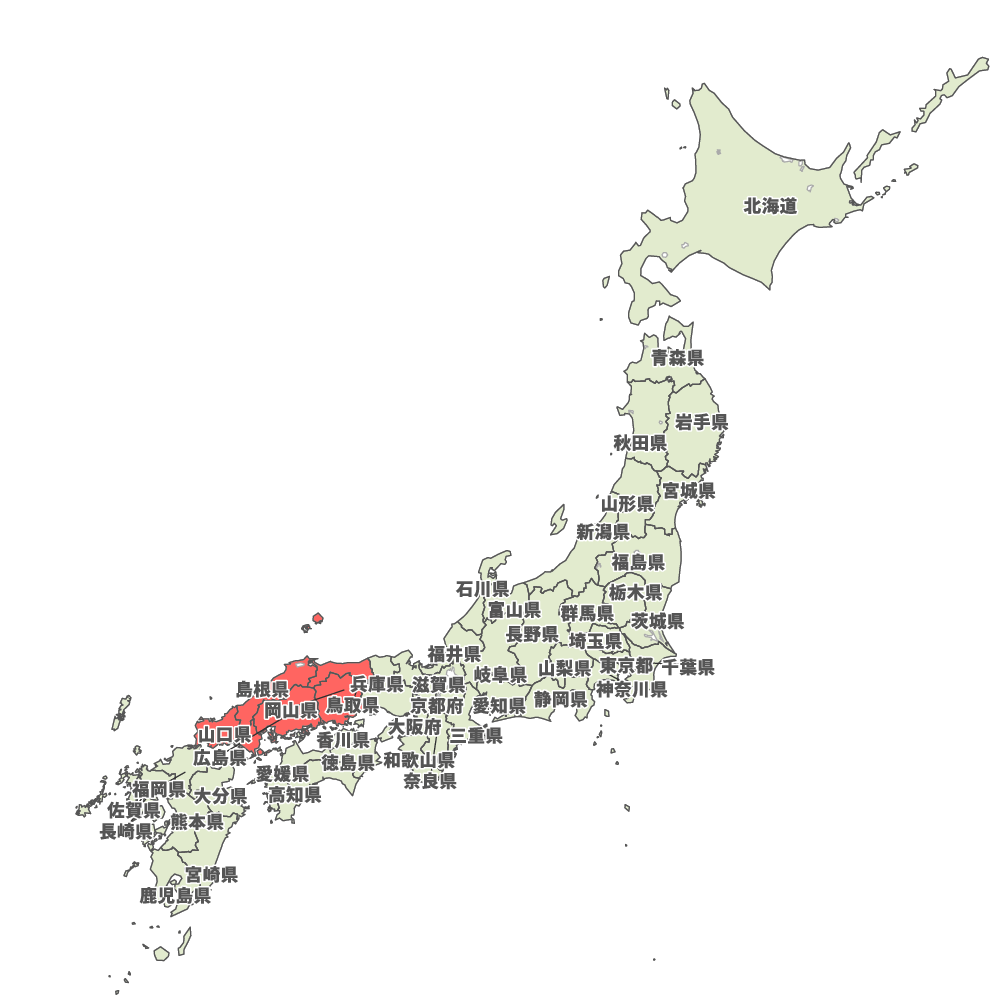日本地図 中国地方の地図イラスト無料フリーイラスト素材集 Frame illust。