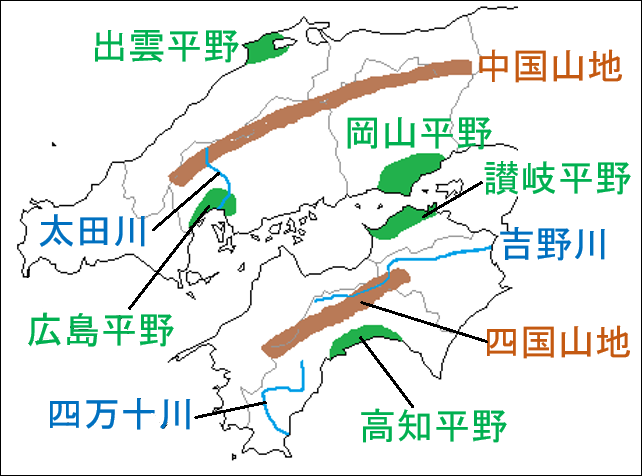 中国・四国地方の地図と特徴 しっかり解説 教科の学習。