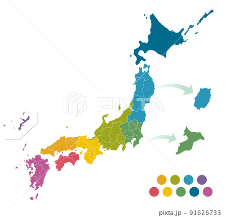 カラフルな水彩の日本地図 中国地方 四国 九州 沖縄 イラスト素材7130614- フォトライブラリ。