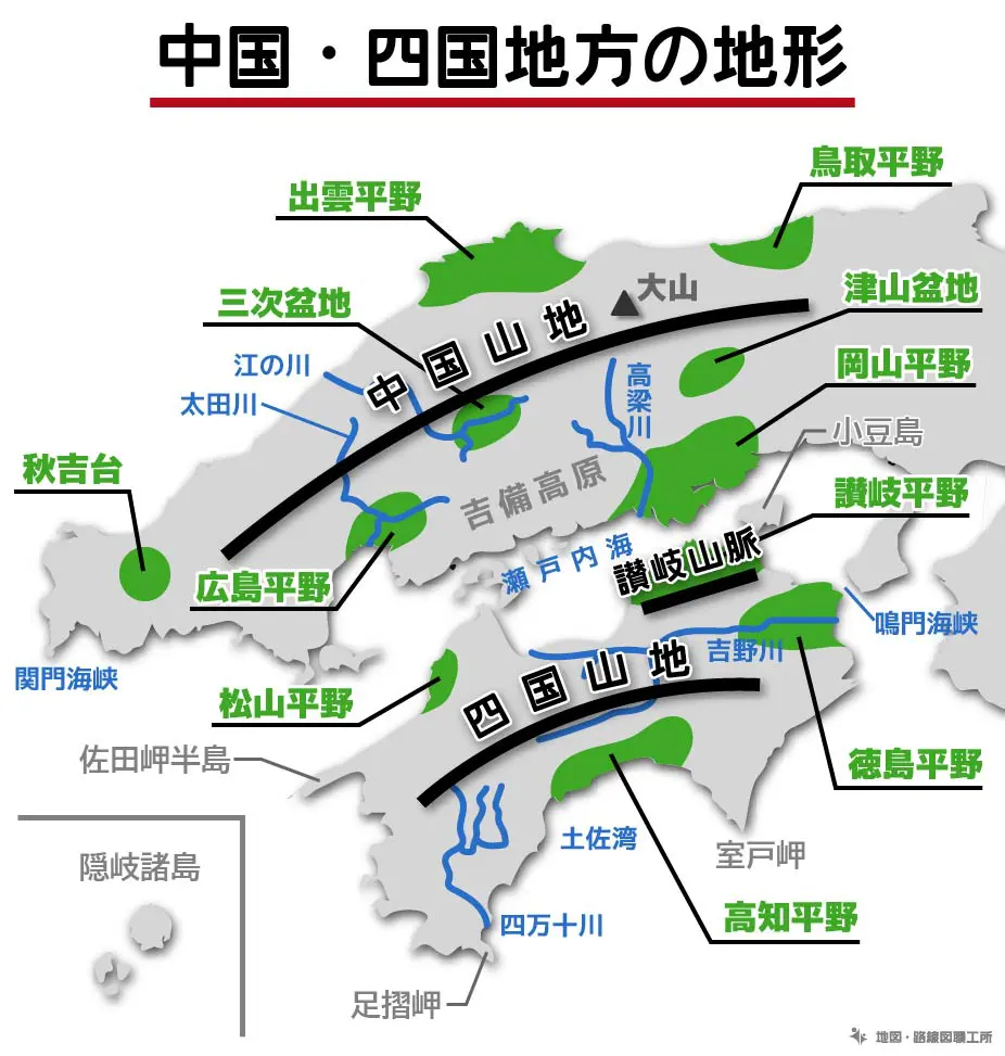 中国・四国地方の地形まとめ主な山・平野・海・川・半島をご紹介!中四国大好きサイト。