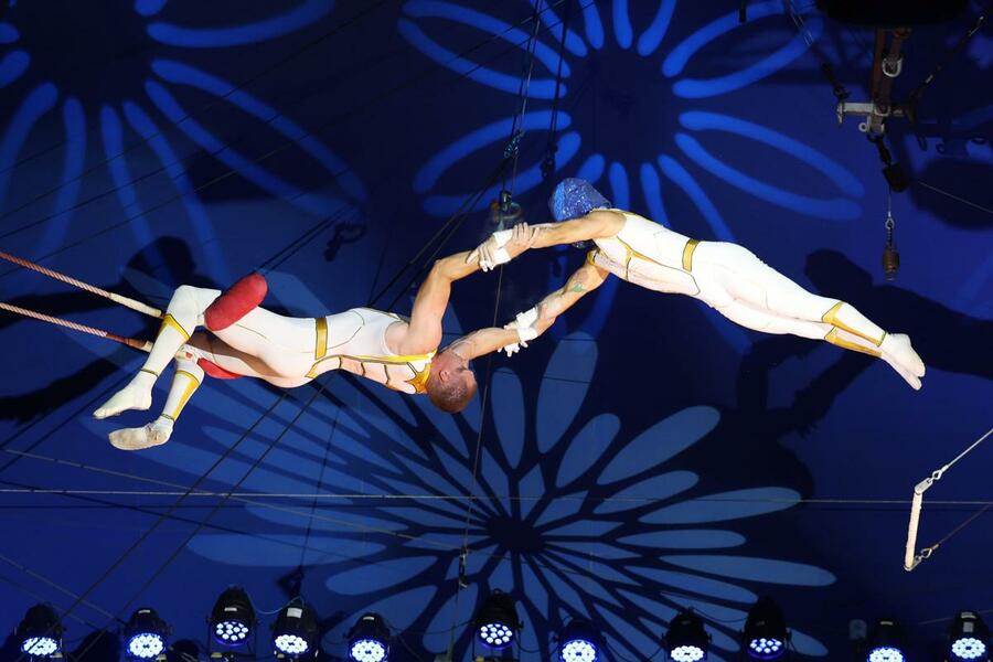 空中ブランコ 息ぴったり、フィナーレ飾る絶技ワールド・ドリームサーカス魅惑の舞台 信濃毎日新聞デジタル 信州・長野県のニュースサイト。