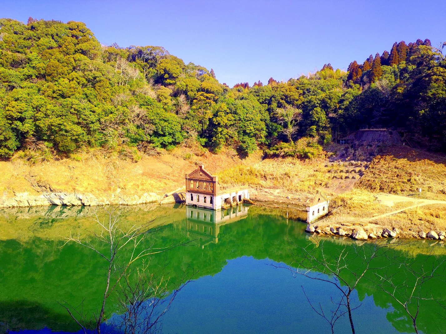 曽木発電所遺構 ダム湖に沈んだり現れたりする廃発電所│Harada Office Weblog。