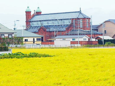 光に浮かぶ赤れんがの教会 大刀洗町の今村天主堂、工事控え最後の姿 西日本新聞me。