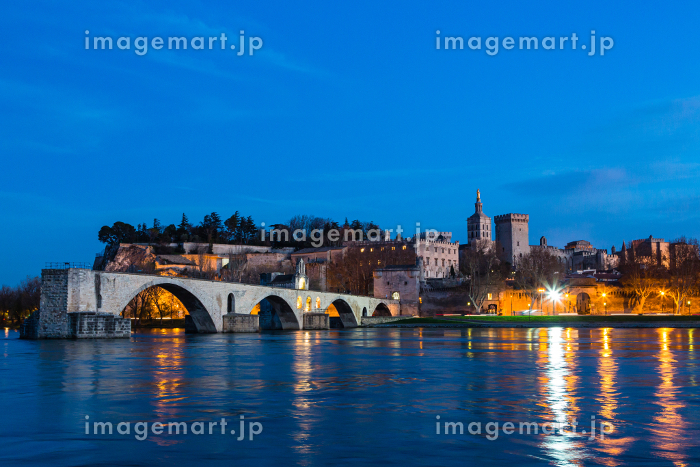 フランス ライトアップされた夜のアヴィニョンのサン・ベネゼ橋と旧市街のノートルダム・デ・ドン大聖堂の写真素材186562820- イメージマート。