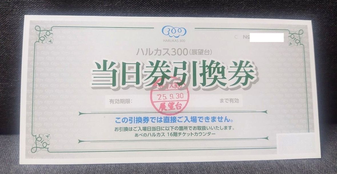 あべのハルカス 展望台 チケット 引換券 ハルカス300 2人分 当日券引換券Yahoo!フリマ 旧PayPayフリマ。