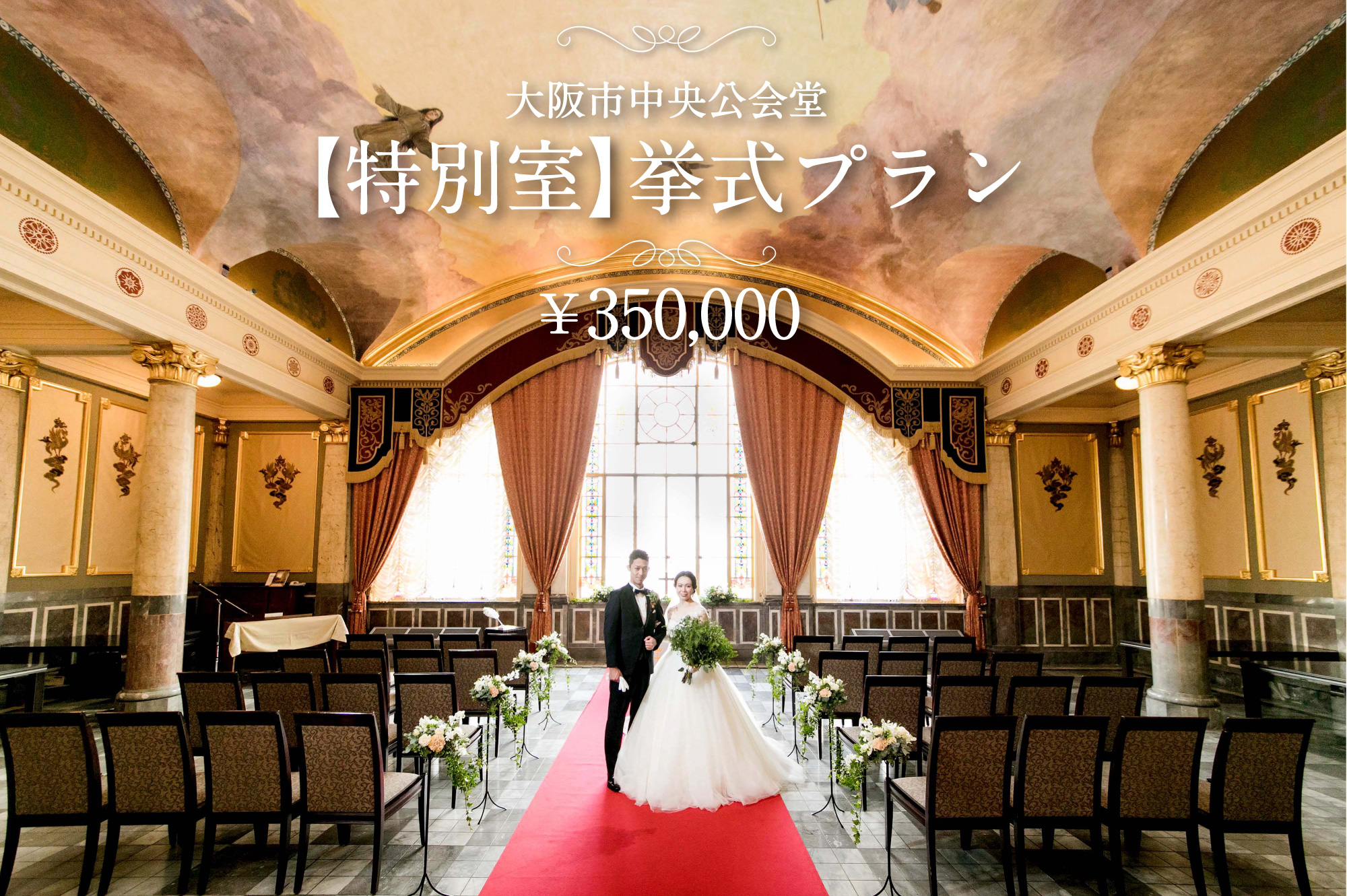 大阪市中央公会堂 での結婚式 料理・費用・衣裳プラン・ウェディングドレス~Dresses式場検索。