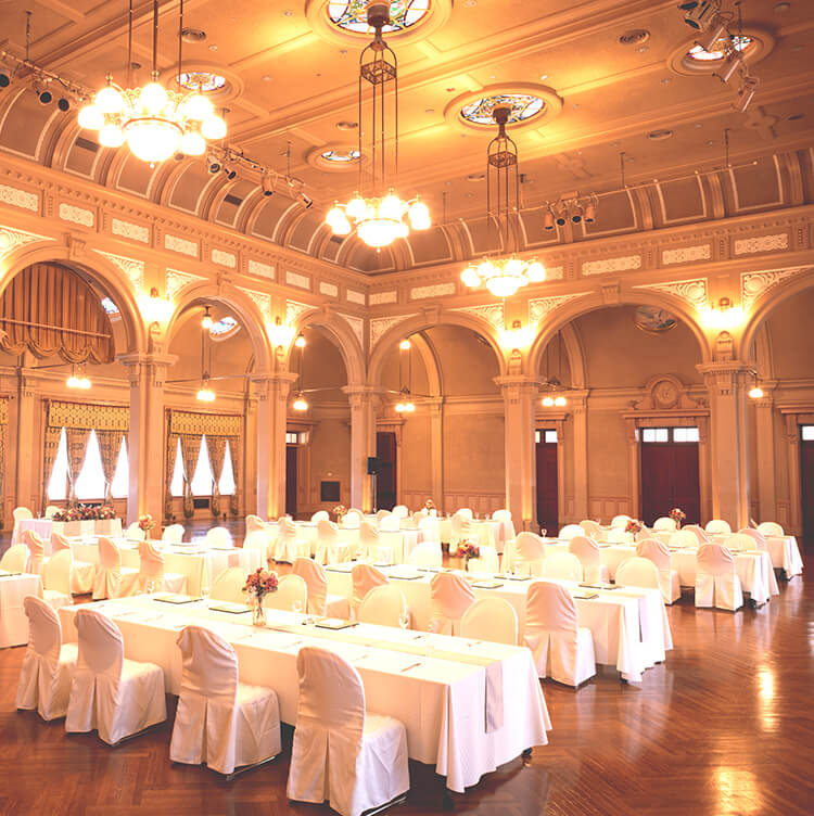 大空間、 中集会室 を30名の少人数で堪能する究極のおもてなし大阪市中央公会堂での結婚式利用可能日程照会・ご見学案内は、大阪市中央公会堂 中之島 公会堂 ウエディング.comまで。